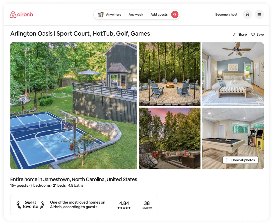 The Jamestown, NC, property launched with zero booking history. It risked getting buried beneath established competitors. Both Airbnb and VRBO have reduced the automatic “new listing” boosts they once offered, so visibility now depends entirely on strategy and early performance.
