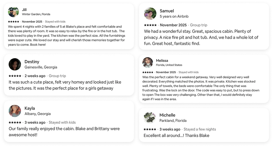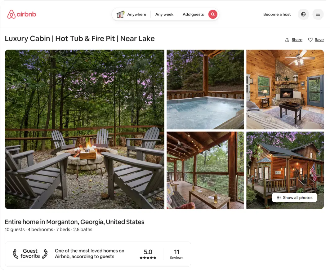 Kim is a busy professional with a growing family. Her mountain rental — Luxury Cabin | Hot Tub & Fire Pit | Near Lake in Morganton, Georgia — was supposed to generate passive income while she focused on her career and raising her children.